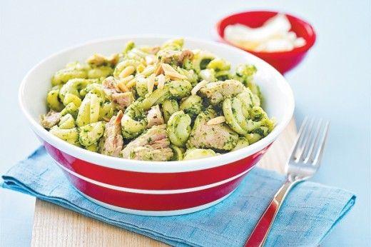 Tuna pasta with rocket and parsley pesto